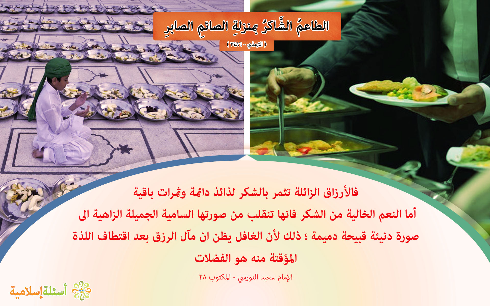 الطاعمُ الشَّاكرُ بمنزلةِ الصائمِ الصابرِ