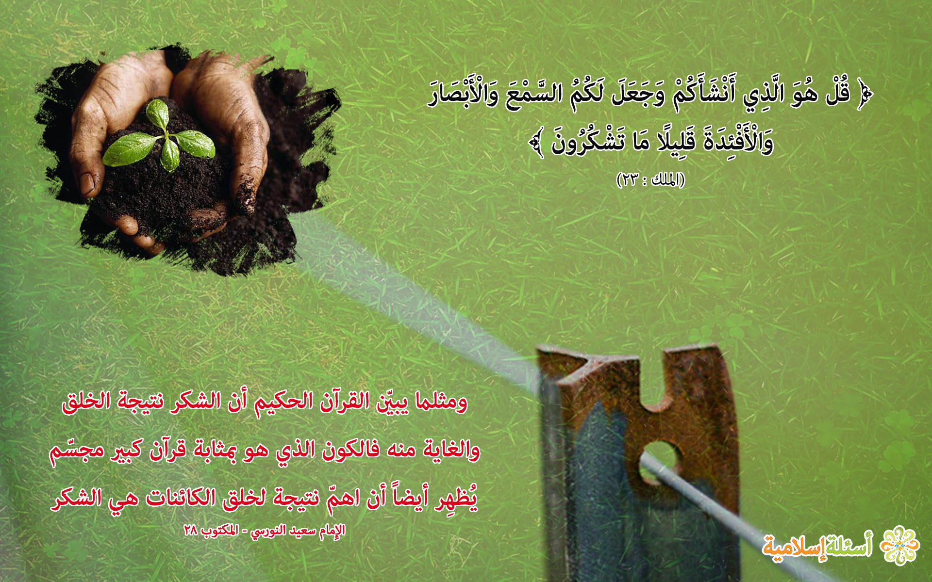 قُلْ هُوَ الَّذِي  أَنْشَأَكُمْ وَجَعَلَ لَكُمُ السَّمْعَ وَالْأَبْصَارَ وَالْأَفْئِدَةَ قَلِيلًا مَا تَشْكُرُونَ
