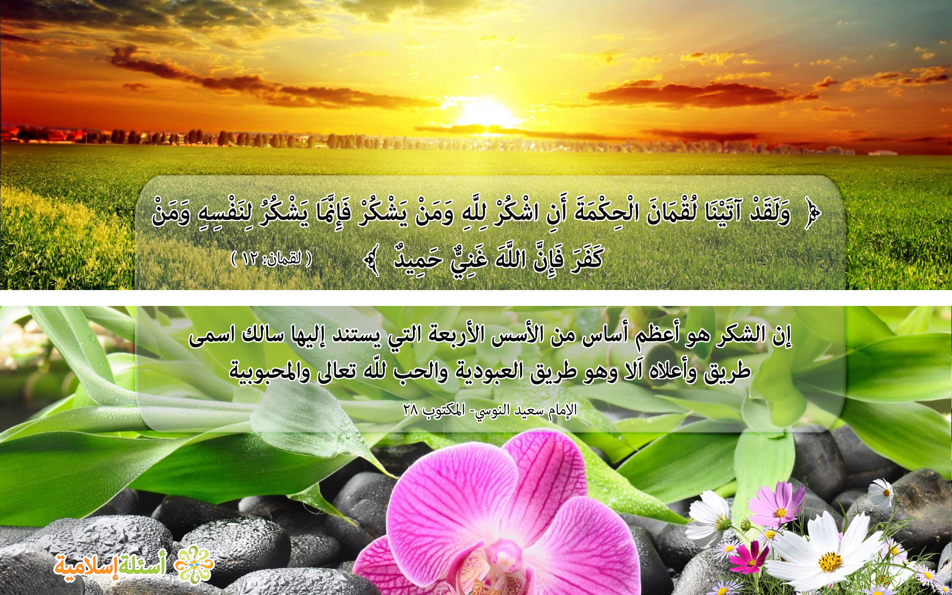 ﴾ وَلَقَدْ آتَيْنَا لُقْمَانَ الْحِكْمَةَ أَنِ اشْكُرْ لِلَّهِ وَمَنْ يَشْكُرْ فَإِنَّمَا يَشْكُرُ لِنَفْسِهِ وَمَنْ  كَفَرَ فَإِنَّ اللَّهَ غَنِيٌّ حَمِيدٌ ﴿
