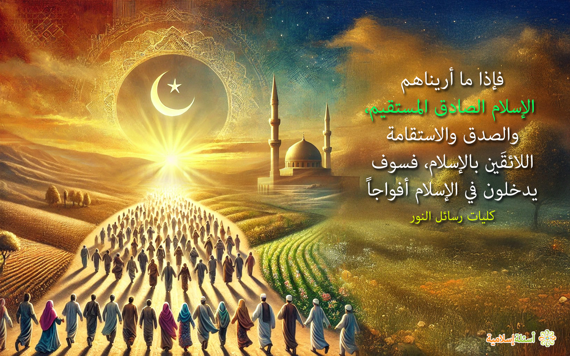 فإذا ما أريناهم الإسلام الصادق المستقيم، والصدق والاستقامة اللائقَين بالإسلام، فسوف يدخلون في الإسلام أفواجاً