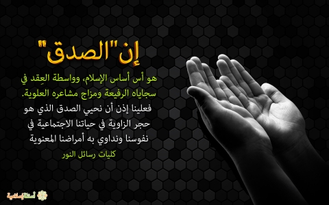 فعلينا إذن أن نحيي الصدق الذي هو حجر الزاوية في حياتنا الاجتماعية في نفوسنا ونداوي به أمراضنا المعنوية